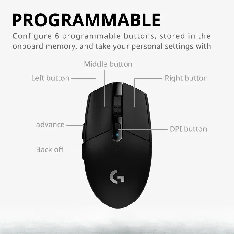 온보드 메모리에 저장된 6개의 프로그래밍 가능 버튼이 장착되어 있으며 가볍고 내구성이 뛰어난 디자인과 내장형 나노 수신기 저장 공간을 갖춘 G304는 탁월한 여행 동반자가 됩니다.